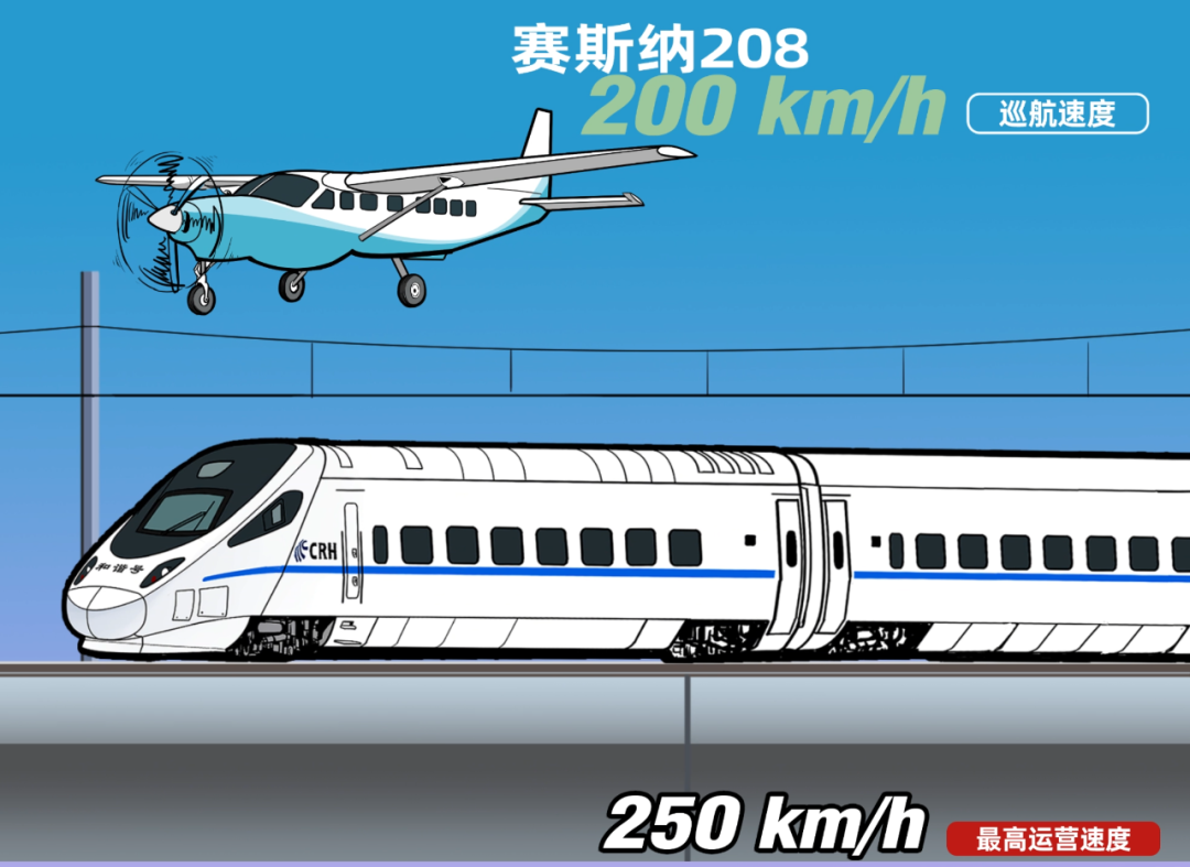 如果是赛斯纳这种小飞机,那高铁将轻松超越,甚至时速250公里的动车组都会比它快。