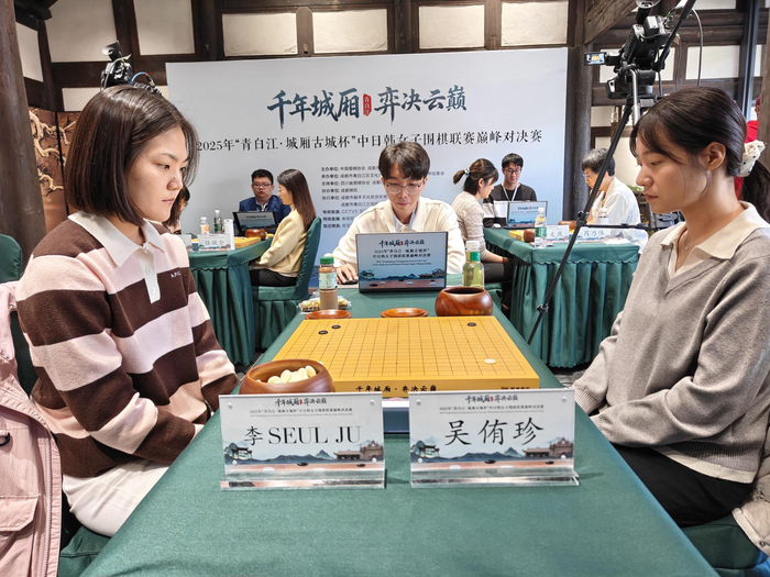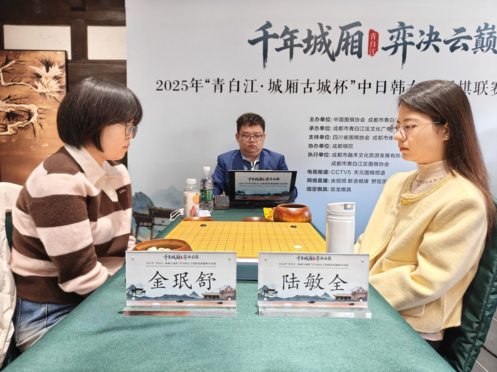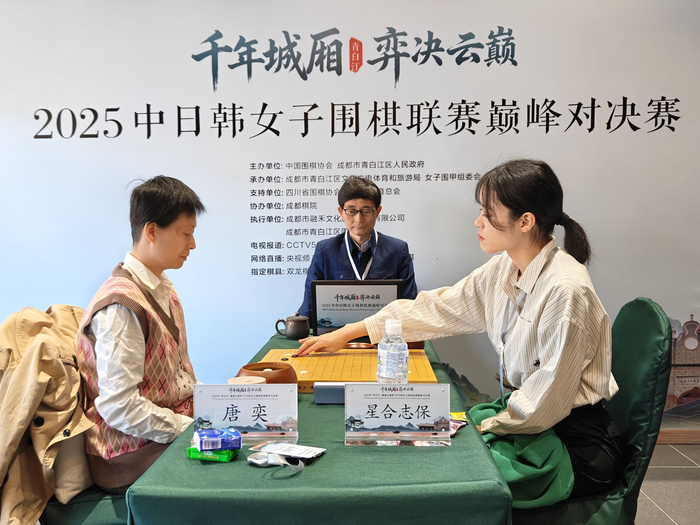 10月25日,2025年“青白江·城厢古城杯”中日韩女子围棋联赛巅峰对决赛首轮在青白江战罢。2024中信杯女子围甲联赛冠军成都银行队2-1战胜韩国联赛冠军保宁队,亚军上海星小目队同样2-1战胜日本联赛冠军围棋·将棋频道队;中国两队会师决赛,决赛将于27日继续进行。
