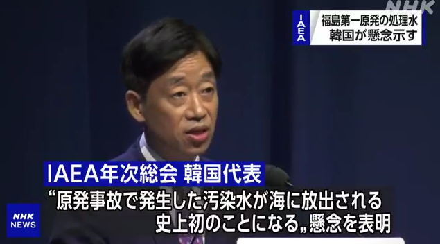 国际原子能机构大会韩国代表对日本排污入海方案提出质疑(日本NHK电视台)