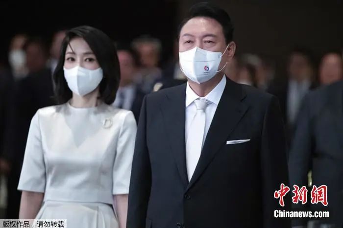 当地时间5月10日,尹锡悦正式就任第二十届韩国总统,并于当天上午在首尔汝矣岛的国会议事堂举行就职典礼。图为就职仪式上的尹锡悦与夫人金建希。 中新社发 YANG DONG WOOK 摄