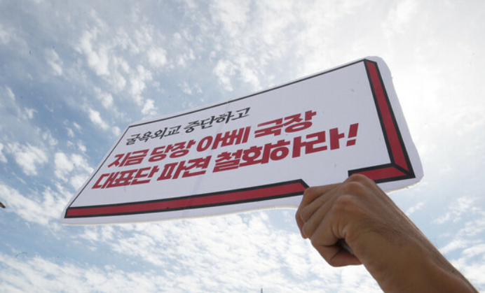 海外网9月27日电 据韩国《韩民族日报》27日消息,韩国一市民团体成员26日下午在位于首尔的总统府前召开记者会,要求韩国政府撤回派去参加日本前首相安倍晋三国葬的代表团。
