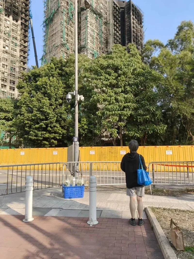 后来我还回过好几次宏福苑,想去碰一下运气,看会不会有人告诉我们一些里面的情况。其实也没什么收获。后来有一个宏福苑居民在群组里悄悄告诉我,说自己也有做同样的事。我才得知在宏志阁外,旁边一栋高楼层的几户人家也没有烧掉,所以他真的很想回去看看自己的家是否安全。如果他的家幸存,这会是非常大的安慰。