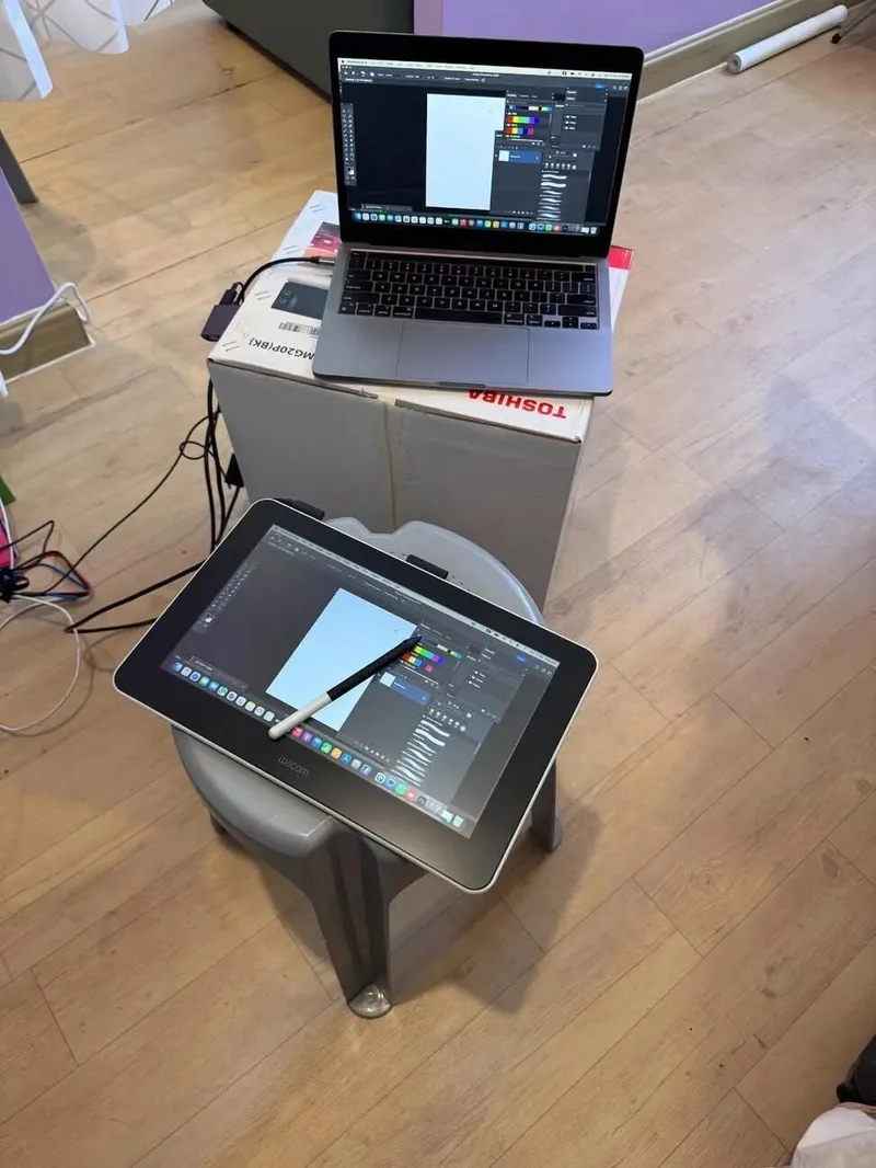 我平时需要用手提电脑和电绘板画插画,但这里空间太小了,天花板只有一盏灯泡,光线不足,空气也不流通,令人窒息。坐在家中画画,偶尔还会被人打扰,灵感中断后就很难再专心创作。