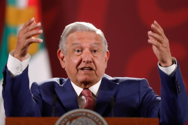 5月30日,墨西哥总统洛佩斯在墨西哥城就美洲峰会参会问题举行新闻发布会。(欧新社)