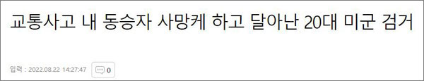 综合韩媒报道,当地时间8月21日凌晨12点55分,一名20岁的驻韩美军在韩国平泽市驾车与道路右侧的护栏相撞,使得坐在车辆副驾驶位的另一名二十多岁的驻韩美军被甩出车外后当场死亡。