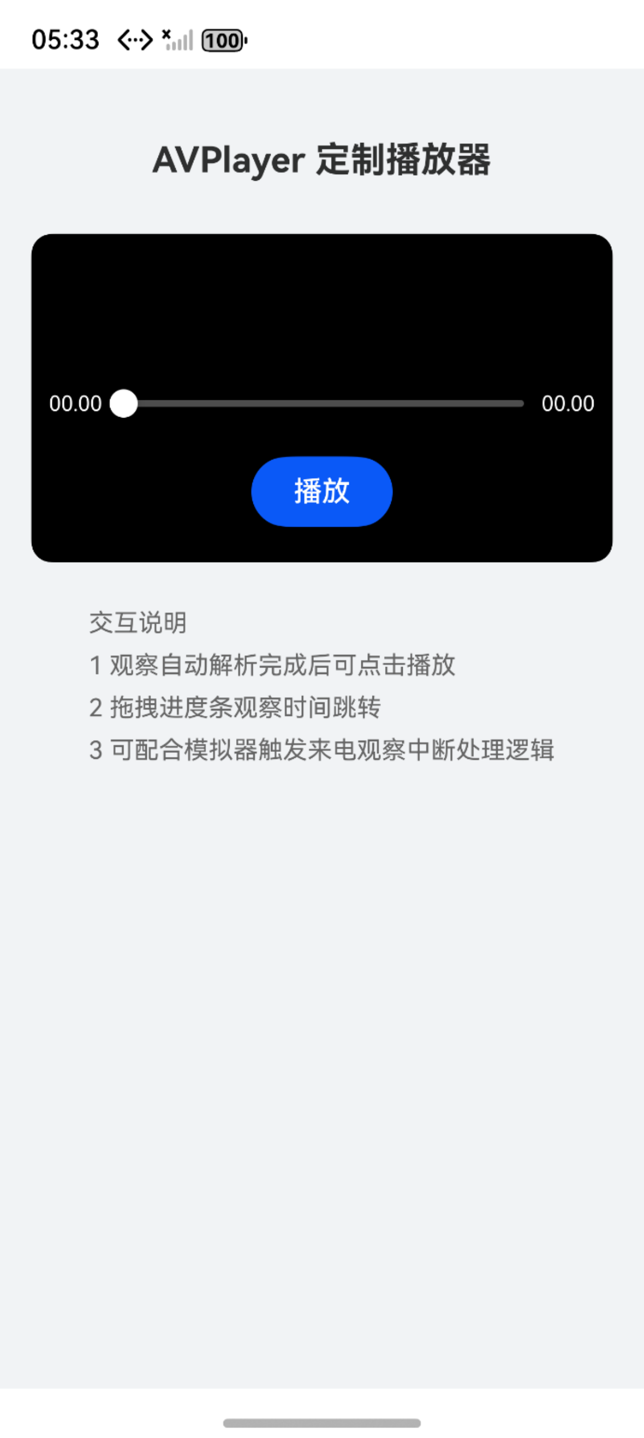 Text('交互说明\n1 观察自动解析完成后可点击播放\n2 拖拽进度条观察时间跳转\n3 可配合模拟器触发来电观察中断处理逻辑')
