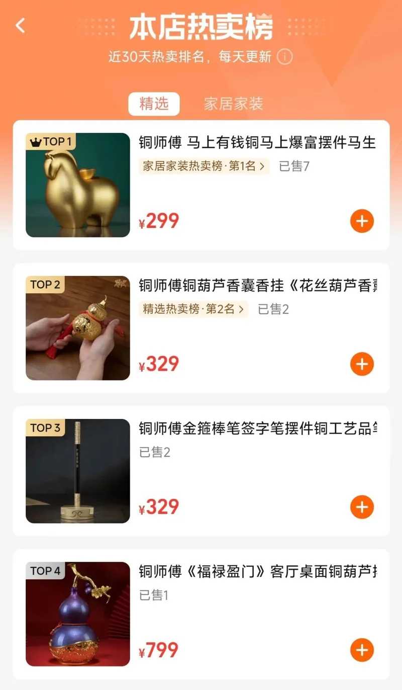 这时候铜师傅卖自家39块钱的小铜葫芦,走薄利多销的高质量路线,对友商就是一种降维打击。