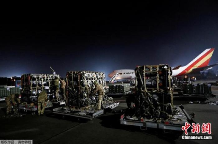 当地时间2月10日,美国飞机将军事援助物资运抵乌克兰基辅鲍里斯波尔国际机场。