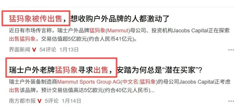 不过现在这条户外品牌的鄙视链也要变了!三大巨头之一的猛犸象,居然被曝要被“金主”出售了?