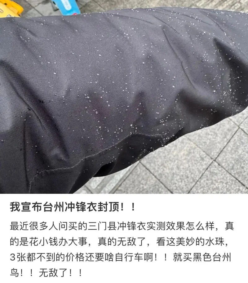 但也被不良商家盯上了,他们用普通TPU薄膜面料冒充专业防水材质,但一淋雨就露馅了,甚至把热压胶做成双面胶,一撕就掉了。