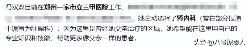毕业后,凭借优异成绩和丰富经验,她进入郑州一家三甲医院工作,成为一名护士。