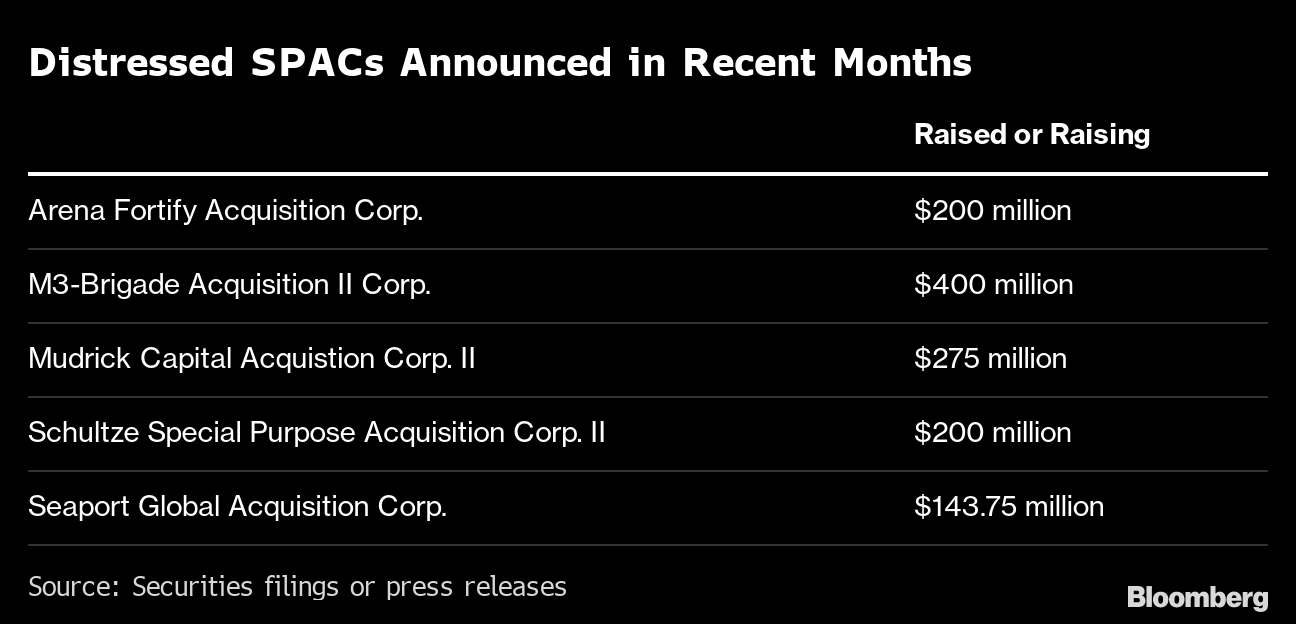 That’s not to say distressed specialists who’ve listed SPACs are giving up. Many of them started trading in recent months, when distressed investors already faced an uphill climb. They’re focused on companies that went through bankruptcy last year.