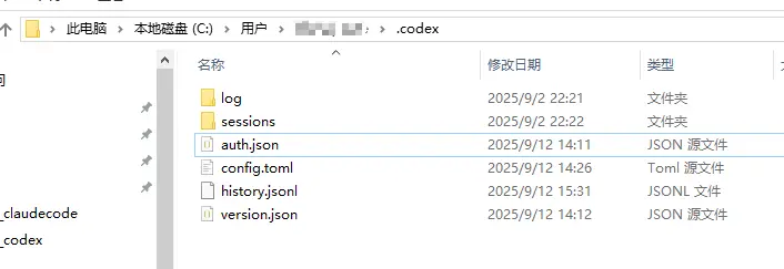 - 如果没有.codex文件夹,那么需要手动创建文件夹,然后创建config.toml以及auth.json两个文件