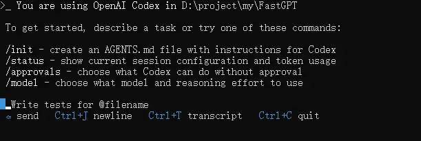 | /init | 创建 AGENTS.md 文件,为 Codex 提供项目指令 |