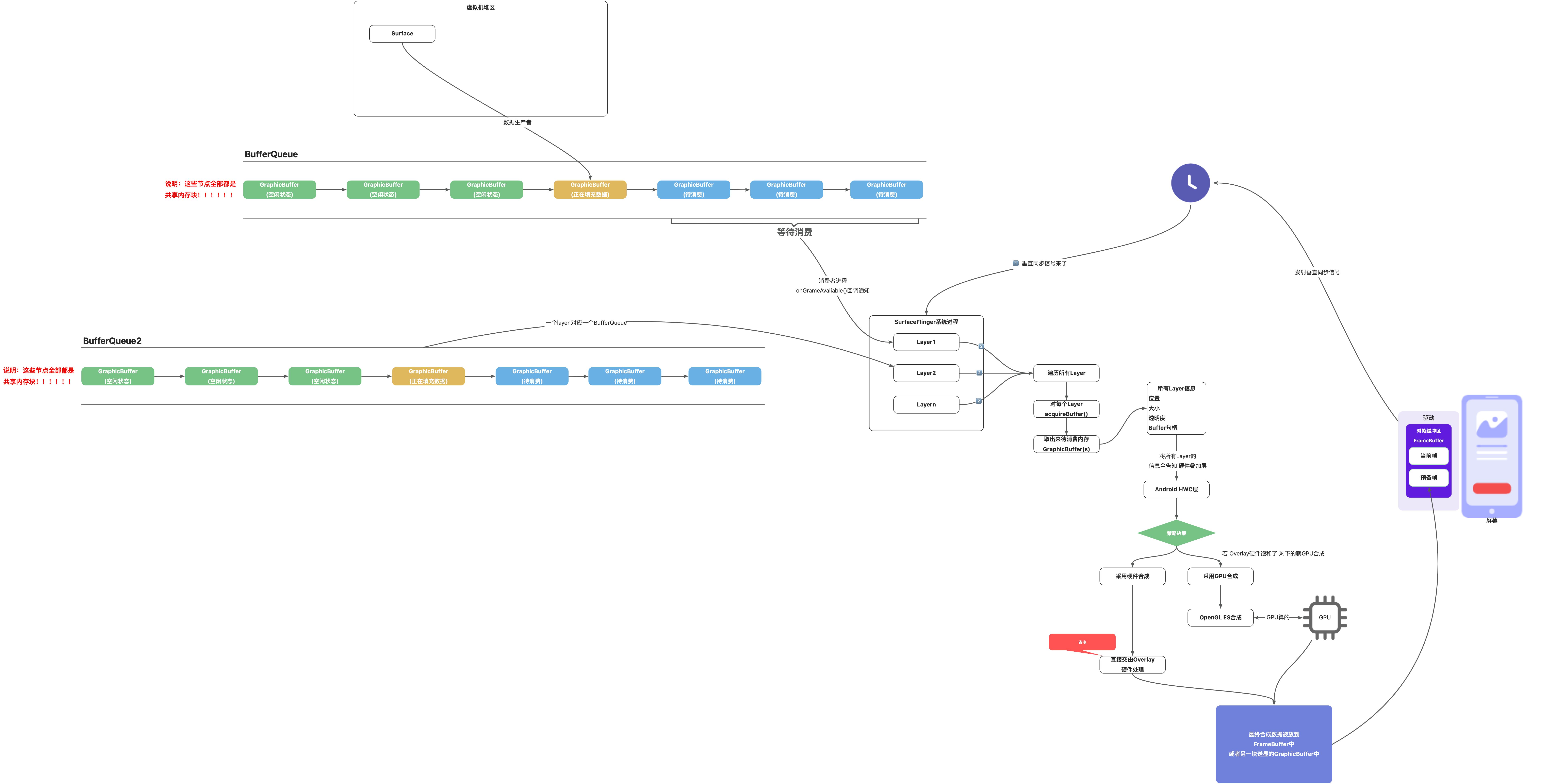 - SurfaceFlingger对所有的Layer进行合成,一般走的是手机的硬件混合渲染器。而我们最新的一帧视频数据,其实相当于绘制了一幅画而已。