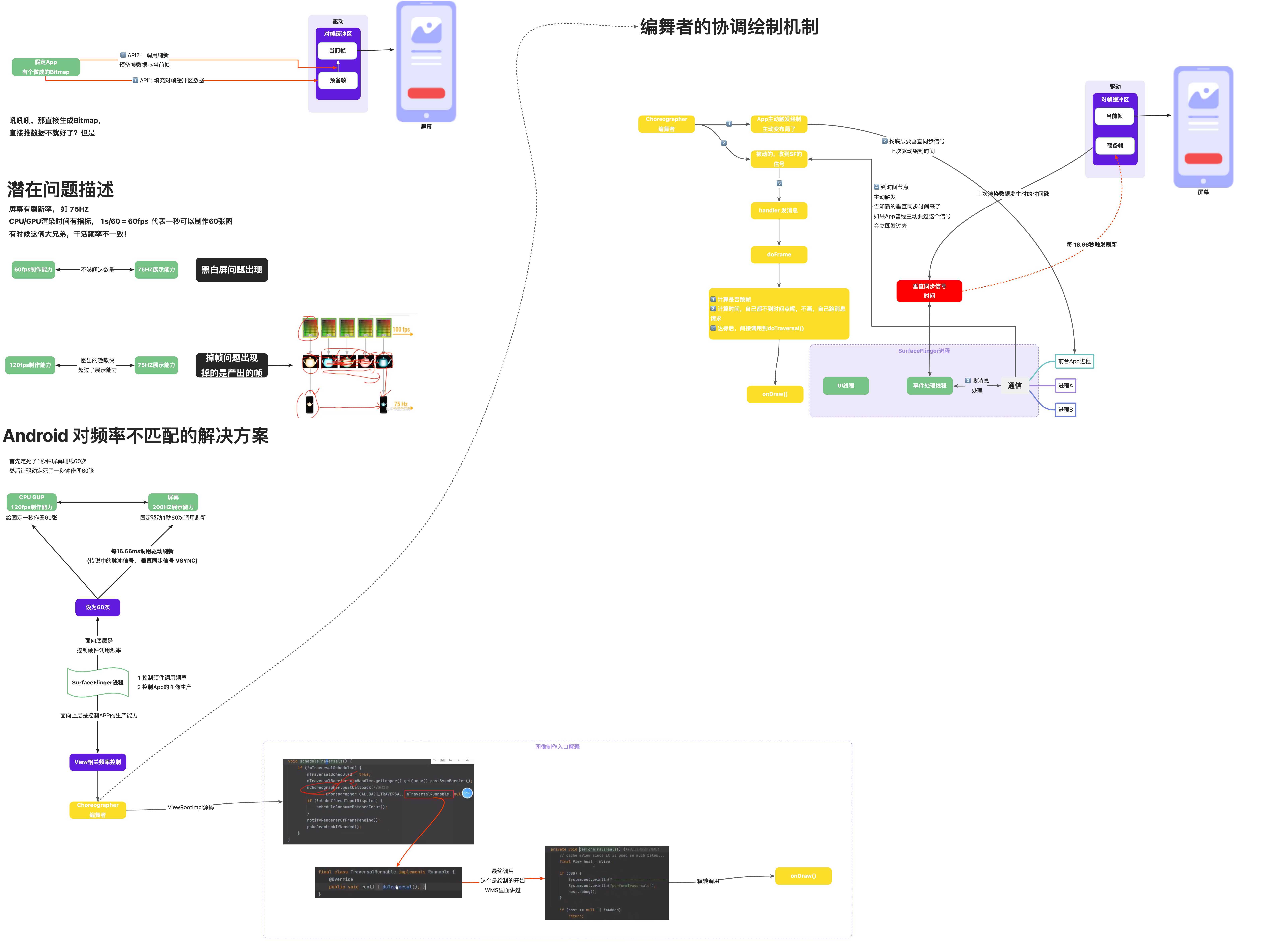 也就是SurfaceView的内容展示,完全不需要靠着View那套编舞者协同调用View节点onDraw()来完成(这块涉及的节点过多,链路过长!耗时!)。所以就完全绕开了编舞者那套机制! 只需要直接接入解码器的输出即可!脱离这条机制最简单的做法,就是单开!