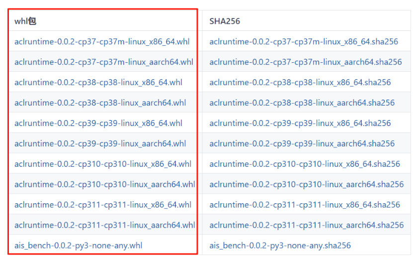 pip install aclruntime-0.0.2-cp310-cp310-linux_aarch64.whl