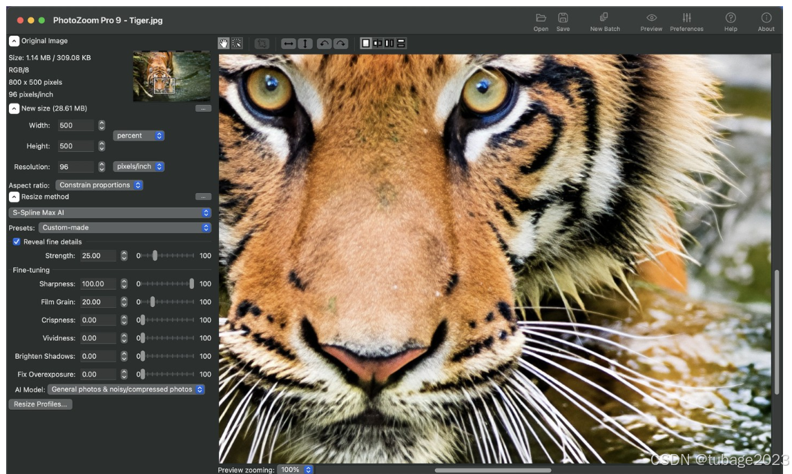 我们引以为豪的是,PhotoZoom Pro 9 采用直观的设计,非常易于使用,具有最佳的便利性。应用预定义的设置或根据您的个人喜好对其进行微调。在分屏模式下查看放大结果,以便在有/没有比较的情况下快速进行比较。并使用 PhotoZoom Pro 9 的裁剪工具创建完美的特写镜头!