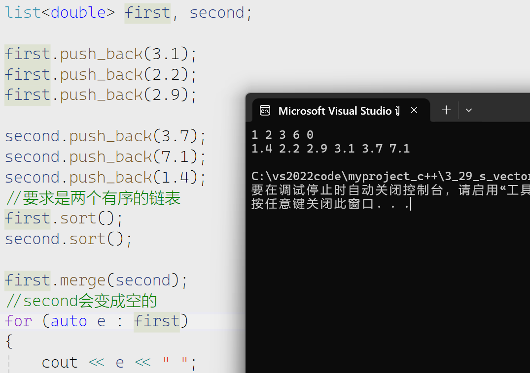 就是将一个容器里面的数据移动到list里面然后在将原来储存的位置删除
