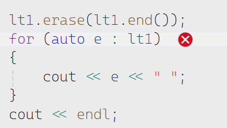 当然这样也是不支持,因为end是指最后一个数据的下一个位置,范围for遍历时会奔溃