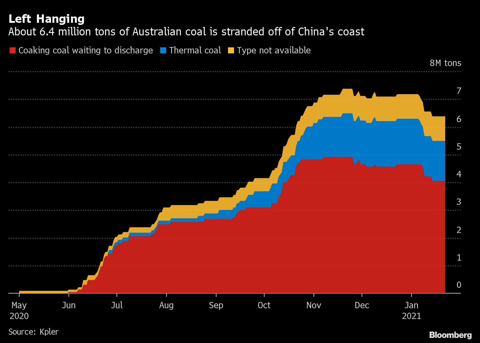 About 6.4 million tons of Australian coal is stranded off of China's coast