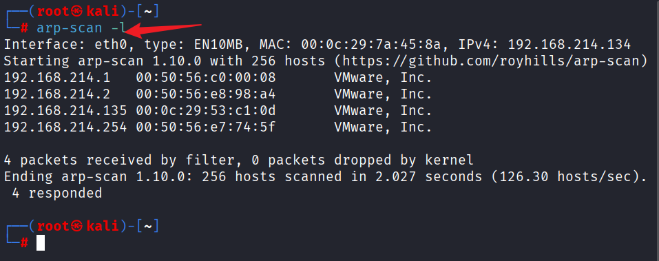 探测主机的工具有很多,子常见的有两种:arp-scan、nmap、netdiscover