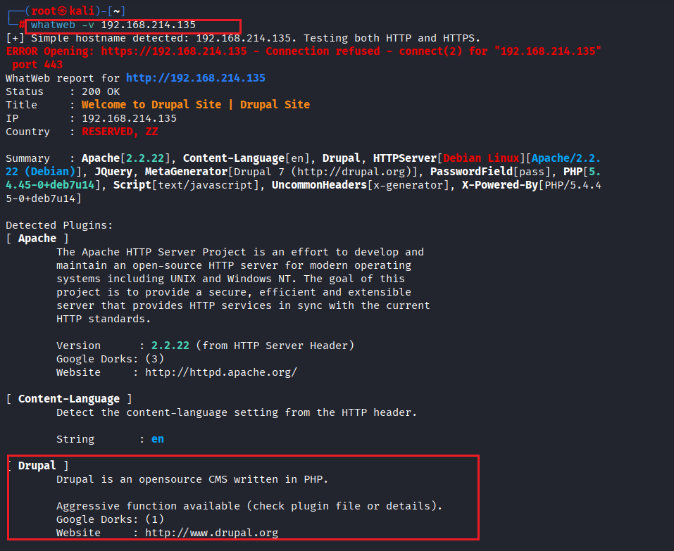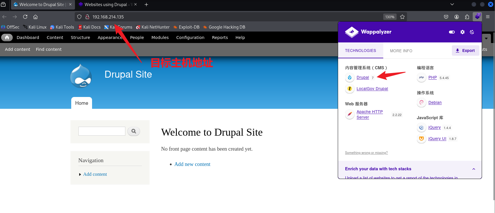 利用火绒插件wappalyzer,利用工具很直观看到CMS是Drupal