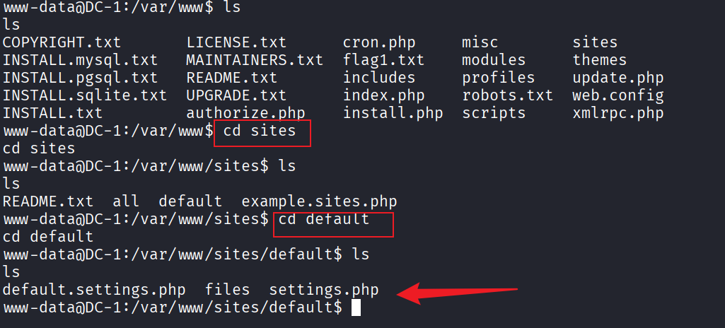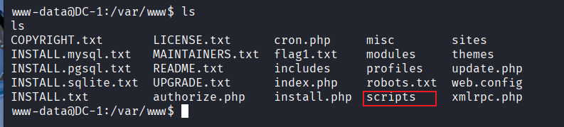 可以看到这个shell权限只是普通权限,先来尝试找一下flag1.txt文件