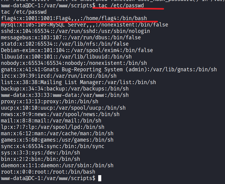 可以看到flag4这个用户,我这里用到的方法是提权打开shadow文件