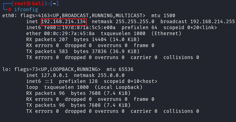 打开kali,使用root用户登陆或者登陆后在切换root模式