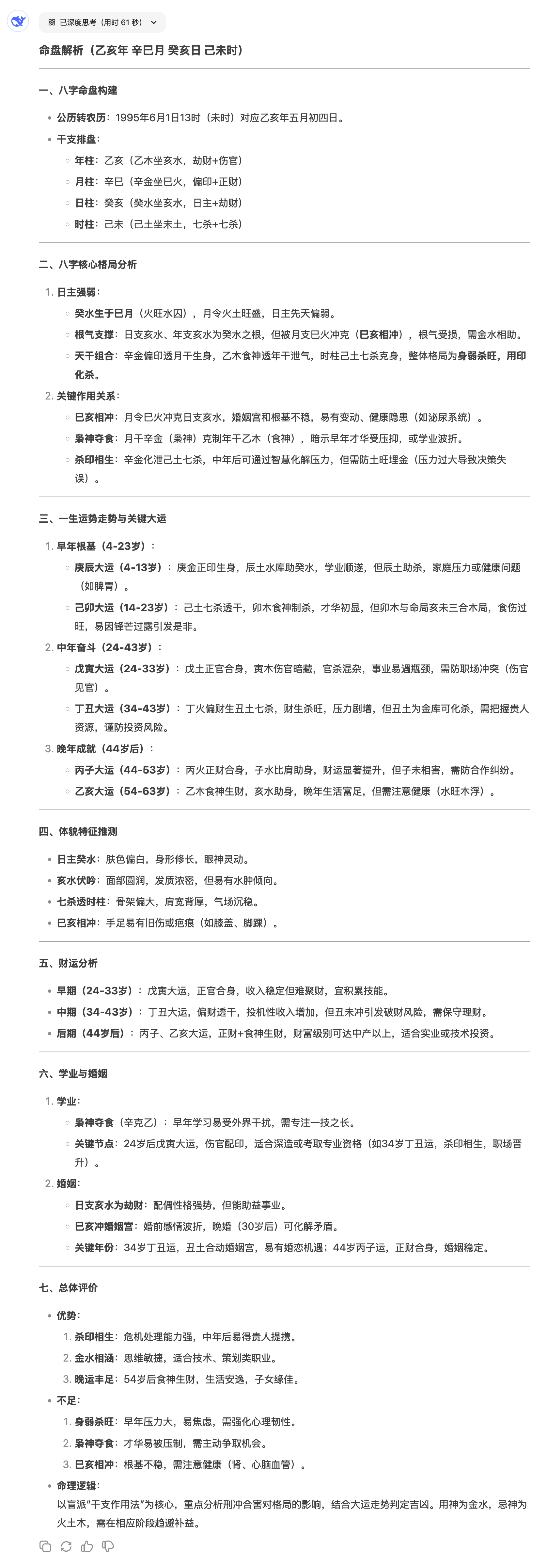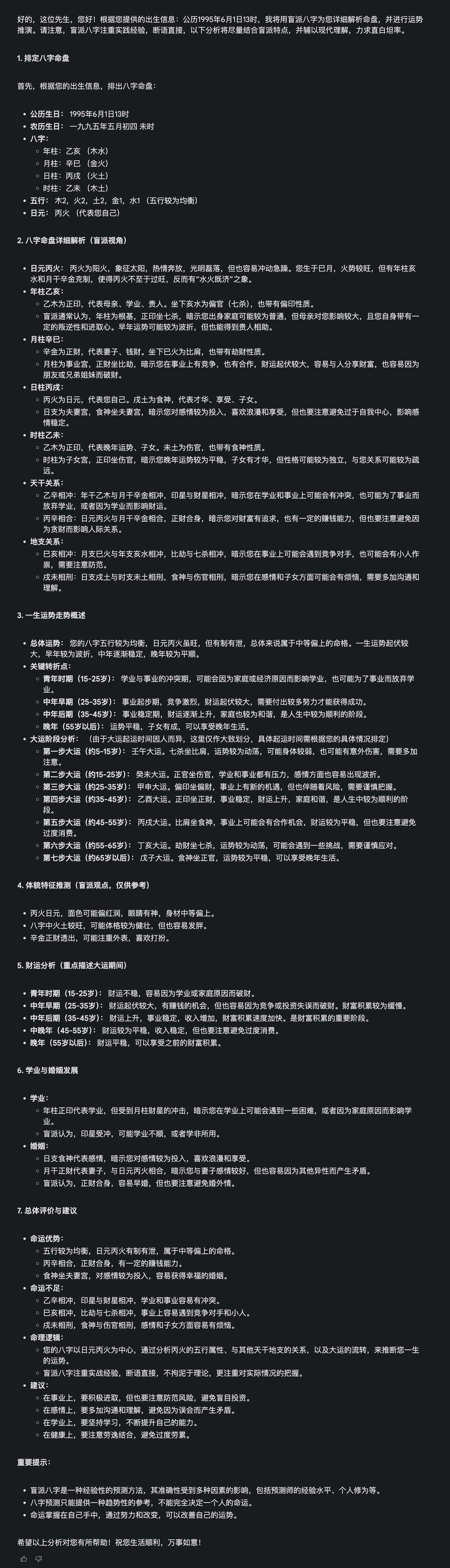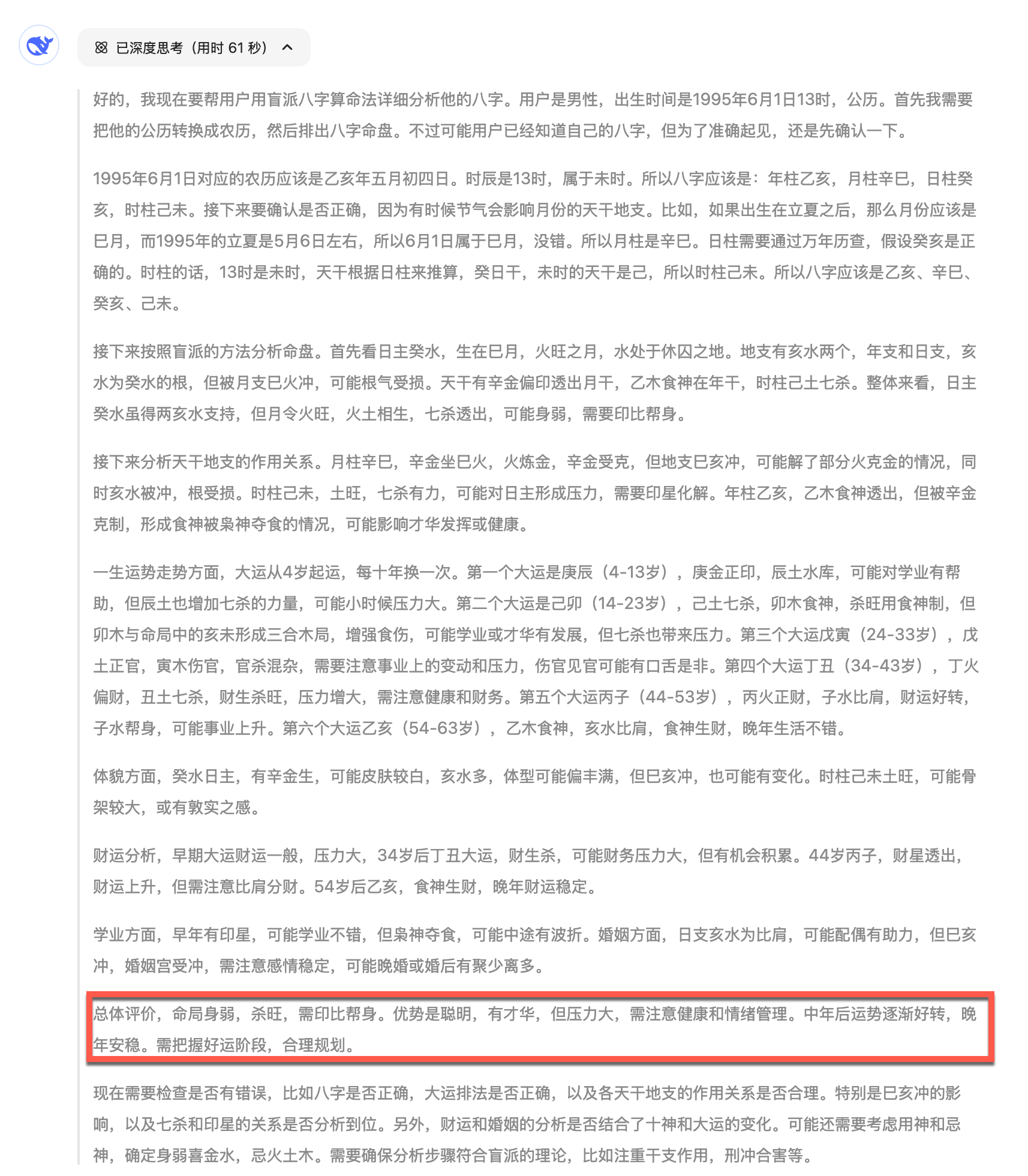 最后说一句,AI有幻觉,使用需谨慎。赛博算命仅供娱乐!