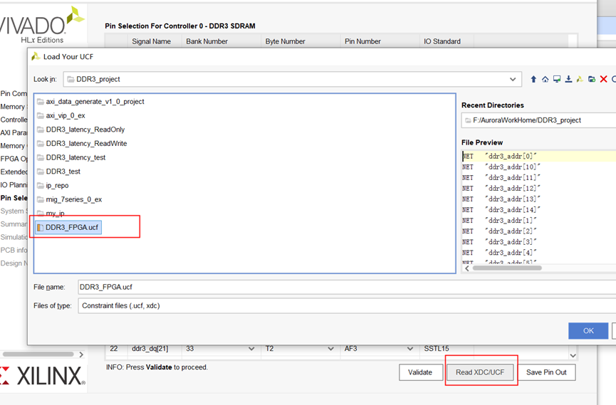 9 引脚选择固定引脚,点击Read XDC/UDF,导入提前准备好的引脚约束文件,引脚约束按照原理图进行约束,导入之后点击Validate