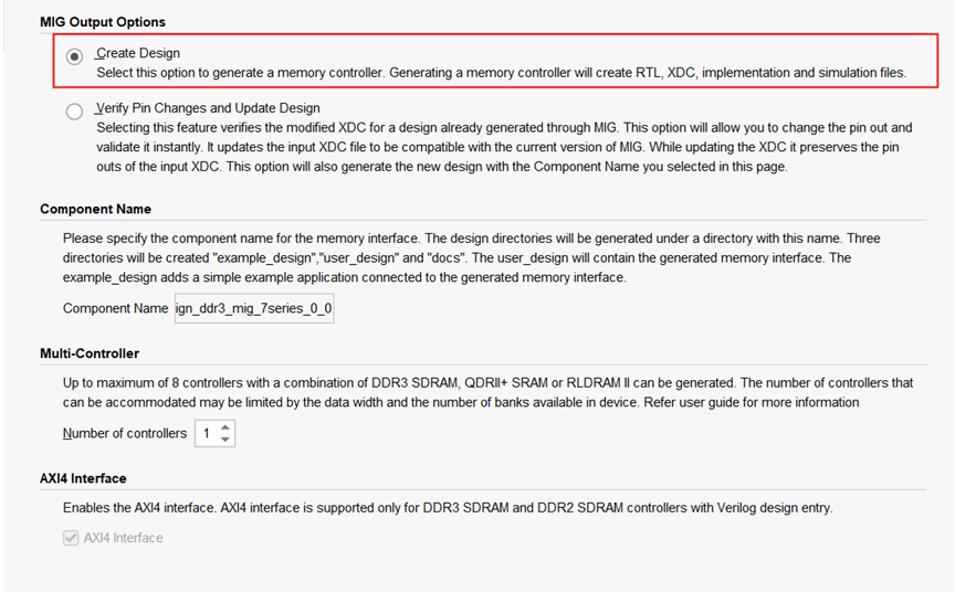 当你在MIG IP核的配置中选择“AXI4”作为用户接口时,IP核会化身为一个AXI从设备,而你的用户逻辑则成为AXI主设备。这意味着,你将使用行业标准的AXI4协议来与DDR3内存通信,这大大简化了与其它支持AXI4的IP核(如PCIE、DMA控制器等)的集成。