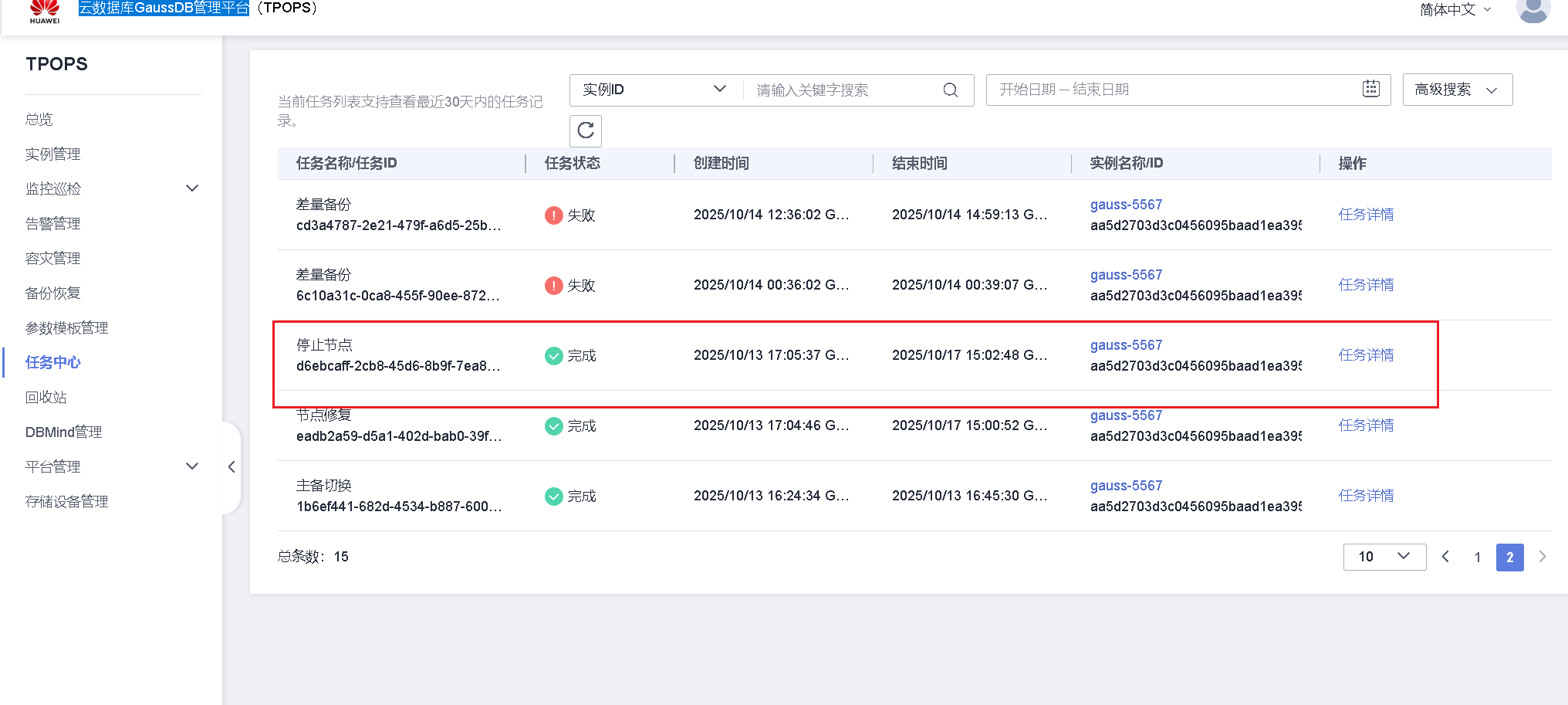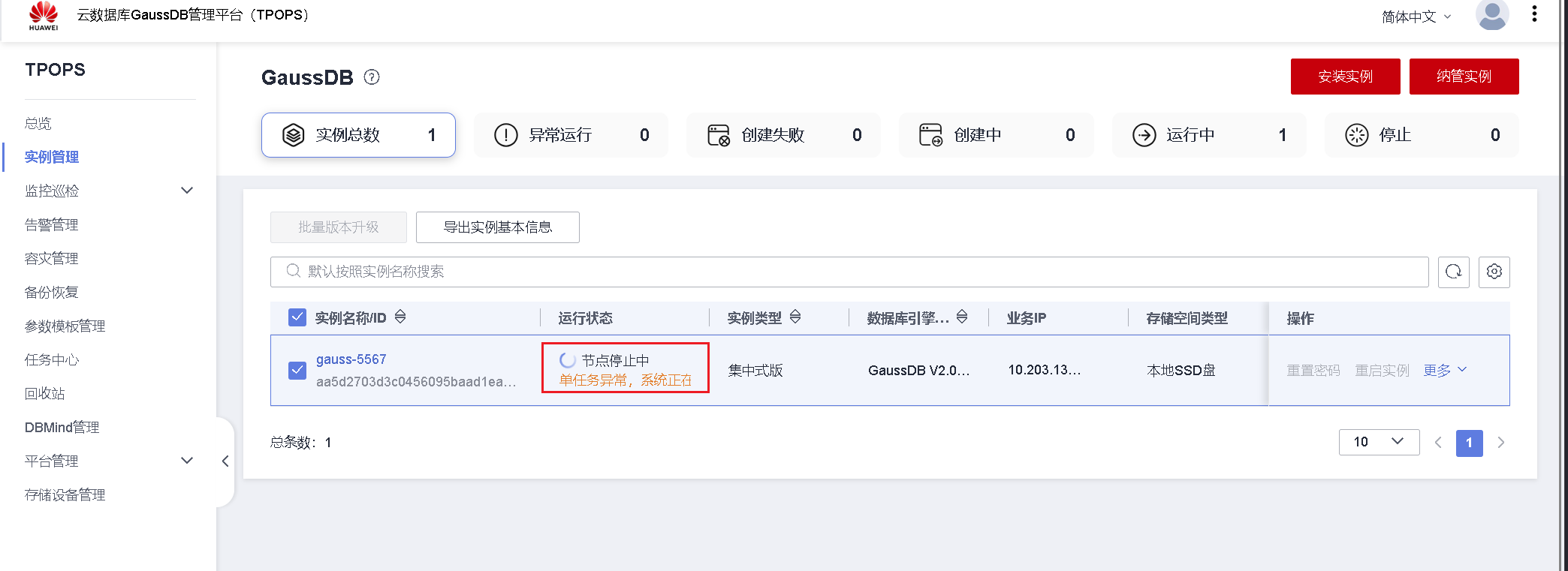 上述报错是因为华为的agent 执行失败了,导致云数据库GaussDB管理平台(tpops)不能连接到数据库节点。修复办法就是根据提示修复agent 就可以了。