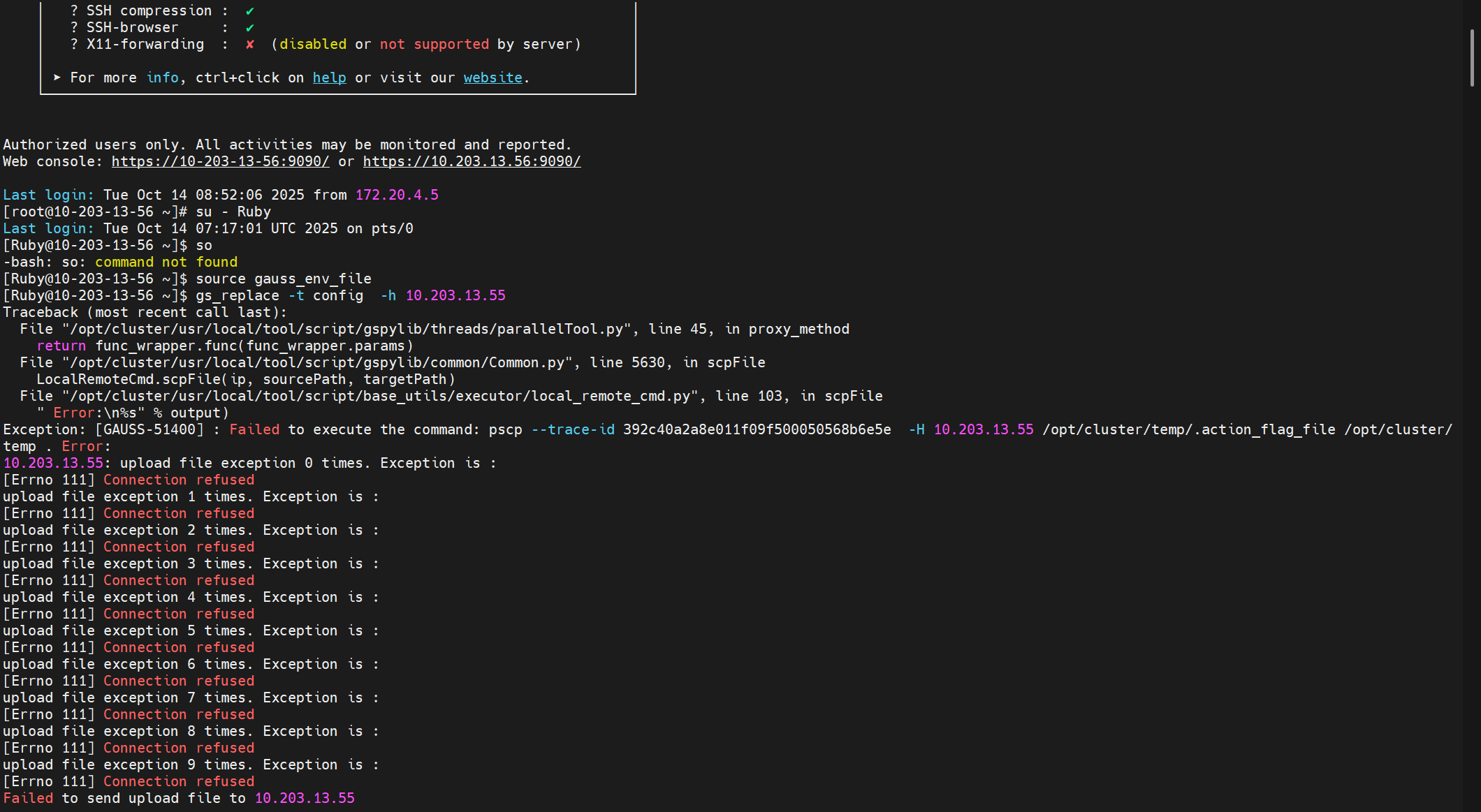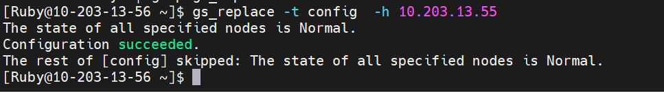 gs_replace -t config -h nodename修复,因是公司测试环境,就大胆尝试,然后居然报错了。