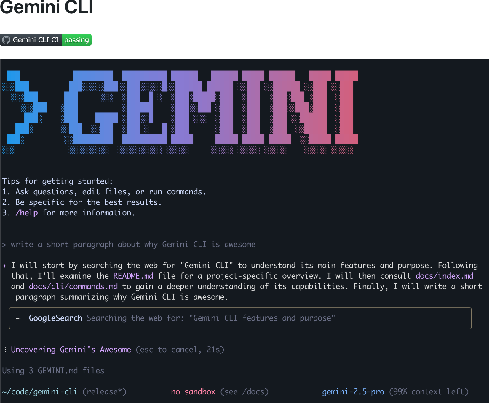 今天这篇文章介绍如何使用 Google 开源的 Gemini CLI。当然,有些同学比较熟悉 Claude Code,因为 Claude 收费,我就不介绍了。