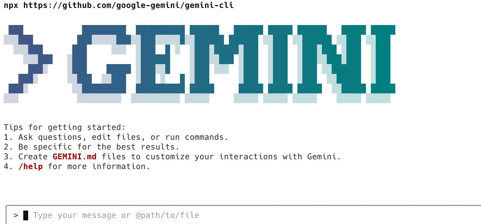 npx https://github.com/google-gemini/gemini-cli