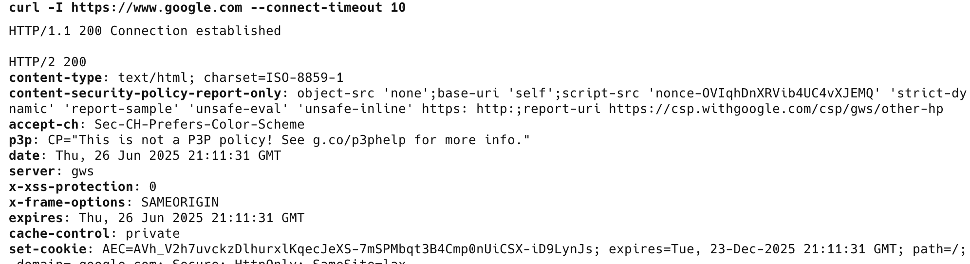 curl -I https://www.google.com --connect-timeout 10
