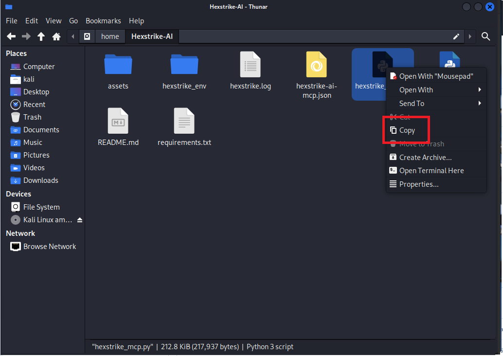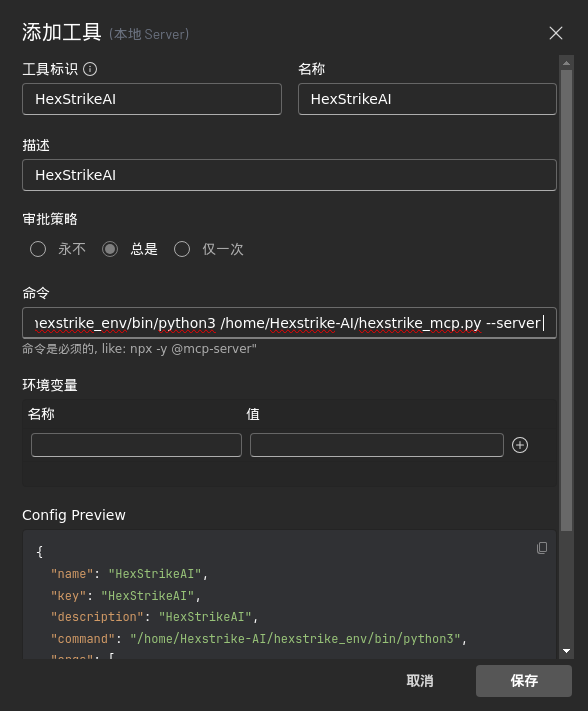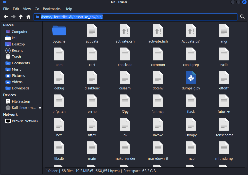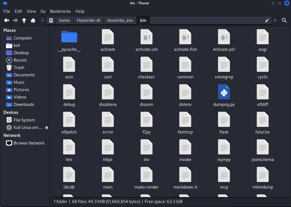 找到你hexstrike AI的文件夹下的hexstrike_env下的bin,复制文件路径