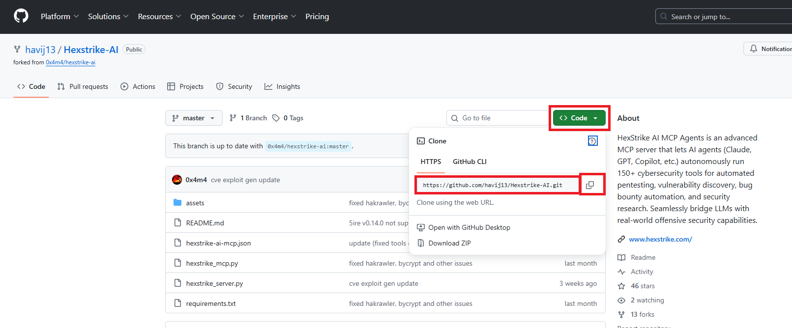 git clone https://github.com/havij13/Hexstrike-AI.git