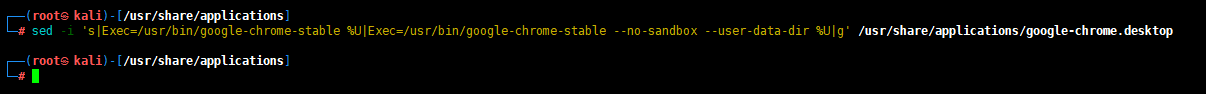 sed -i 's|Exec=/usr/bin/google-chrome-stable %U|Exec=/usr/bin/google-chrome-stable --no-sandbox --user-data-dir %U|g' /usr/share/applications/google-chrome.desktop