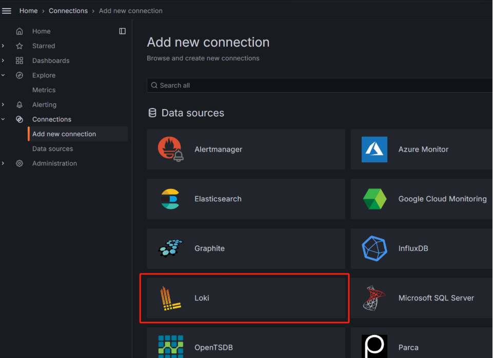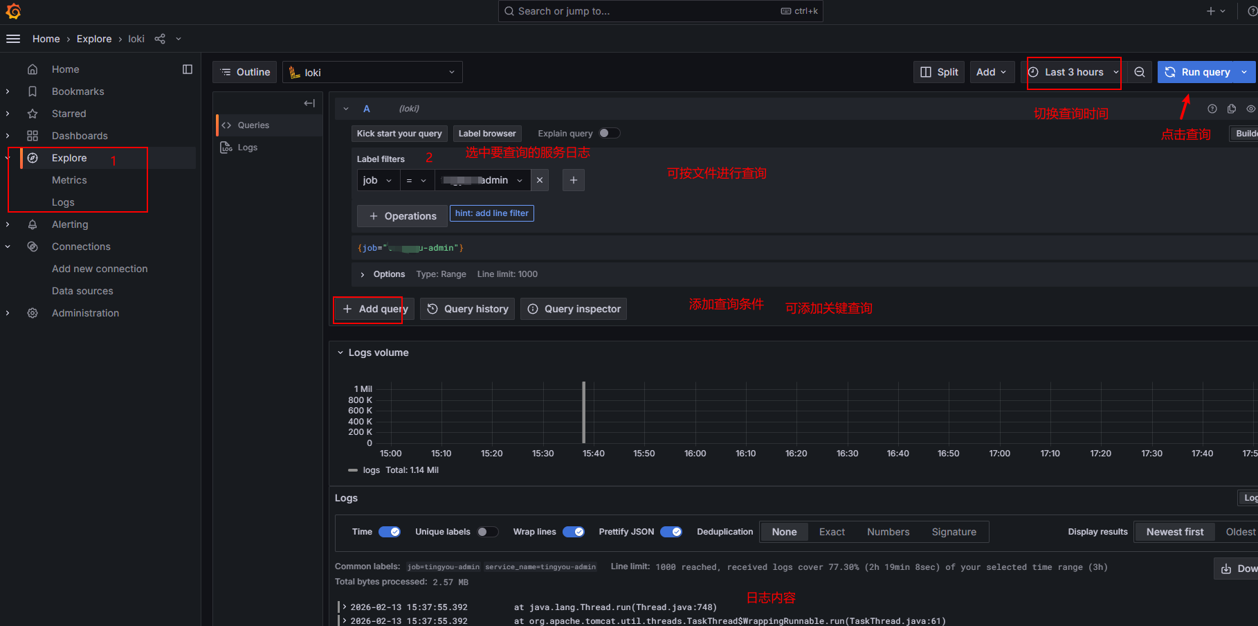• Grafana:从Loki中获取日志信息,进行可视化展示