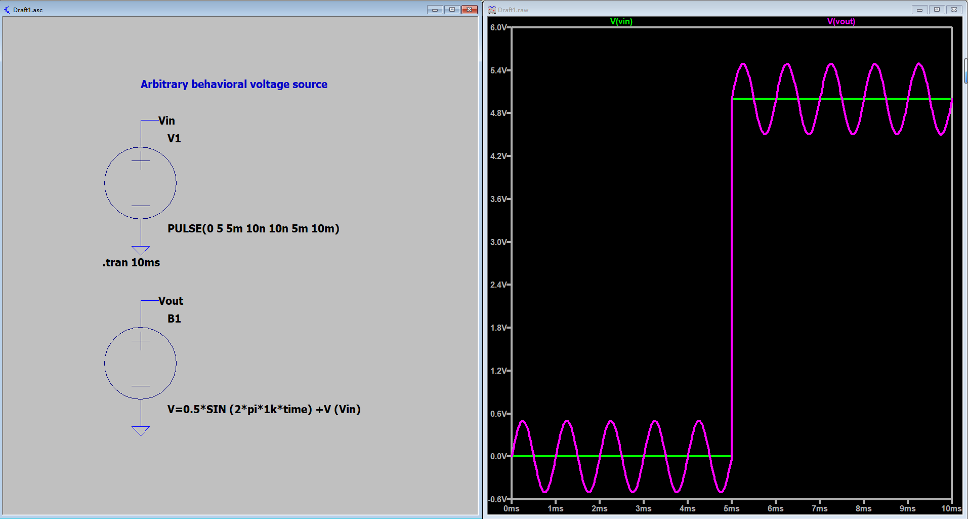 仿真结果:看到在Pulse电压上叠加了正弦电压的变化曲线。