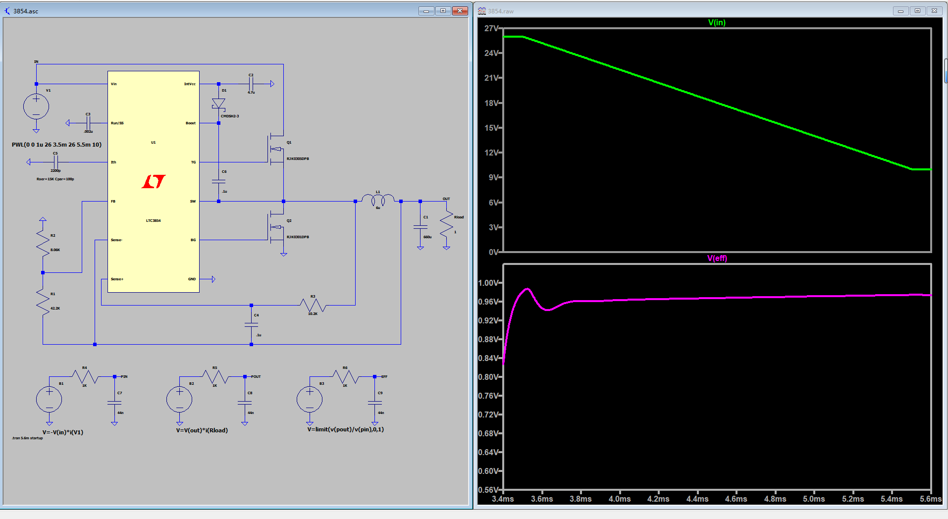 主要是.meas虽然可以计算效率,由于往往.meas 是设定不同的参数进行多次仿真,然后CTRL+L在 meas data查看随着不同参数变化的效率图,但是这意味着二者有不同的横坐标,现有的是时间,meas就是不同的输入电压,表现方式不同,也就无法放在同一波形界面