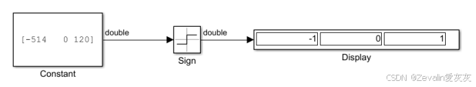 该模块只有一个输入端口,当输入信号大于0时Sign输出1,当输入信号等于0时Sign输出0,当输入信号小于0时Sign输出-1。