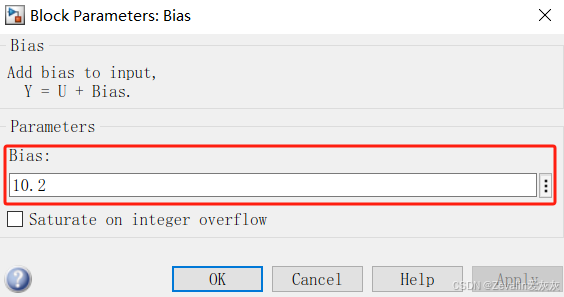 该模块的作用是对输入信号u追加一个偏移量Bias(可正可负),然后将结果输出。