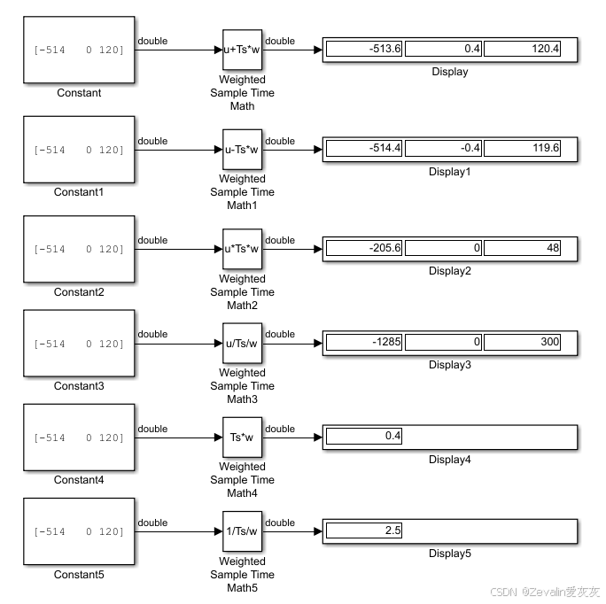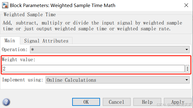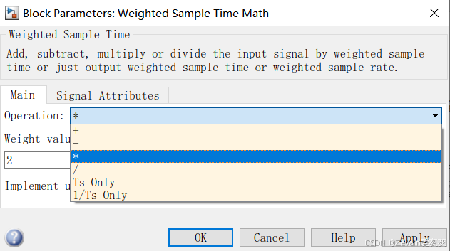 (1)该模块可以将输入信号u加、减、乘或除以加权采样时间,然后将结果输出,或仅输出加权采样的时间或加权采取率(加权采样的时间的倒数)。