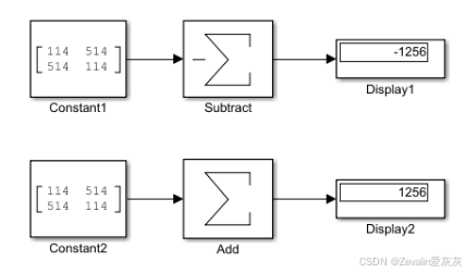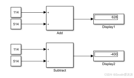 (1)Add模块与Subtract模块的功能基本完全相同,不同的是它们的默认配置不一样,Add模块默认有两个加数输入端口,而Subtract默认有一个减数和一个被减数输入端口。