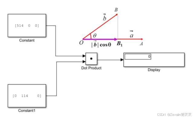 该模块可求出两个输入向量的数量积(两个向量的模相乘,再乘以它们夹角的余弦值),并输出之。